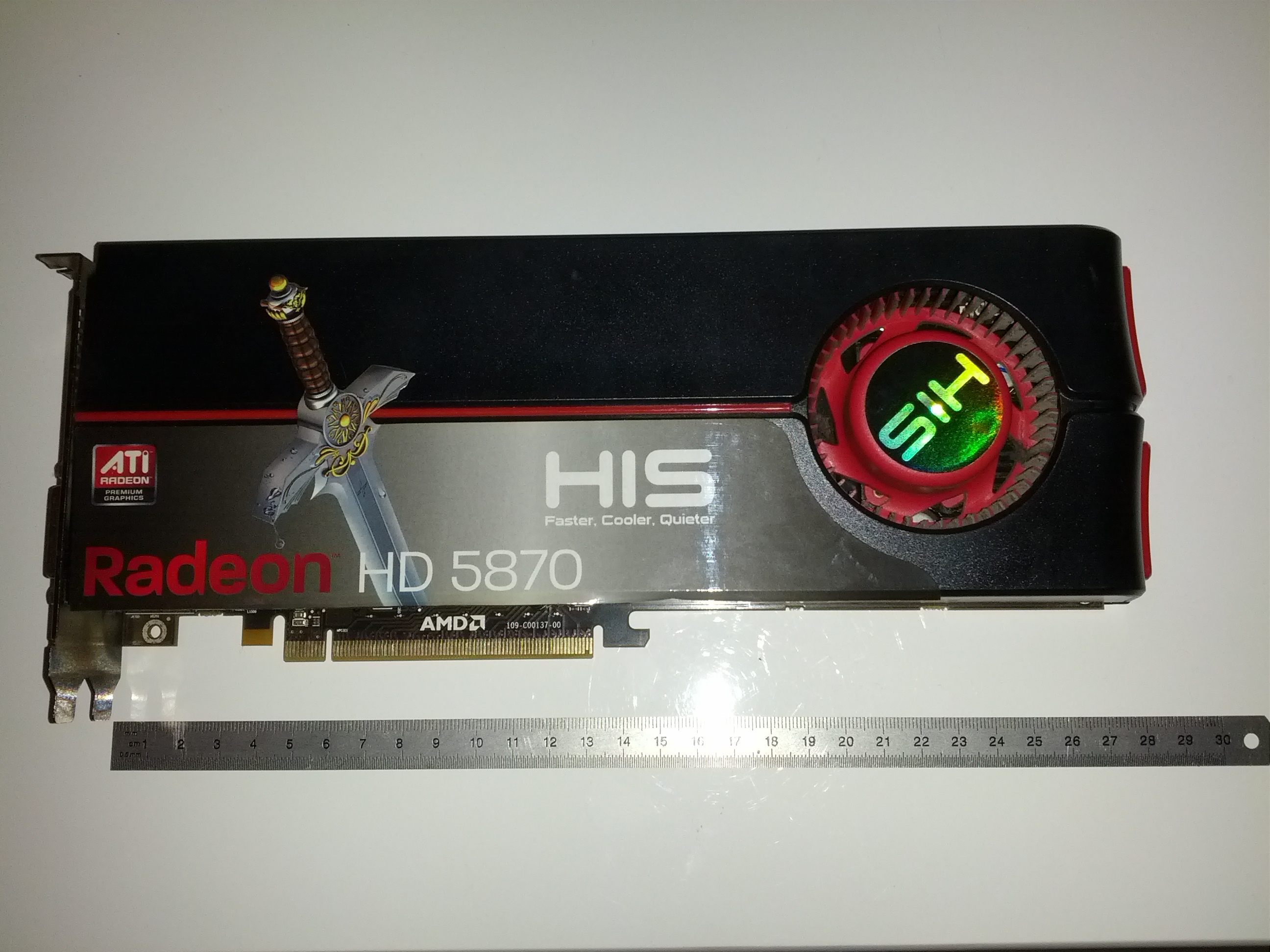 - AMD/ATI Radeon HD 5870: HIS branded, 1 GB of GDDR5, really great graphic card, gets old – 40 € – Picture front